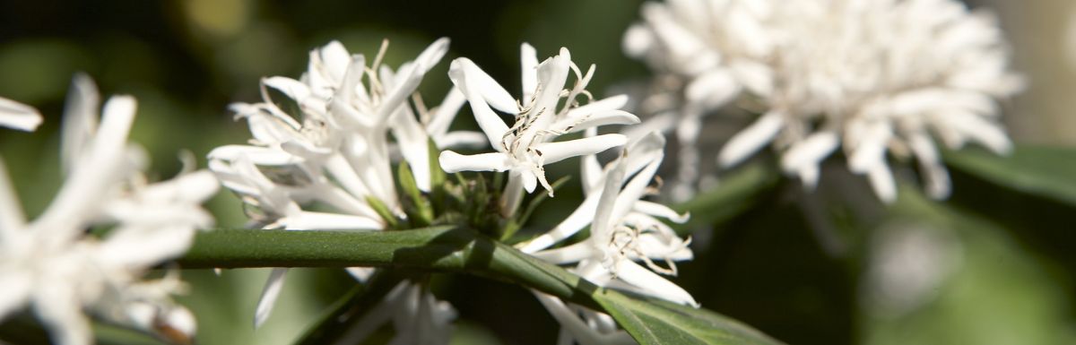 Erst im Alter von drei Jahren entwickelt die Kaffeepflanze das erste Mal Kaffeeblüten. Die grün-weissliche Blüte einer Kaffeepflanze dauert zwei Tage und wird von Regenschauern ausgelöst. Die zwittrigen Blüten befruchten sich selber und sind somit auf keine Fremdhilfe angewiesen.