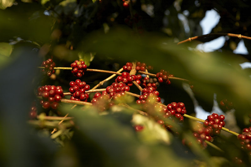 Ripe coffee cherries: Inside this drupe you can find the coffee bean.