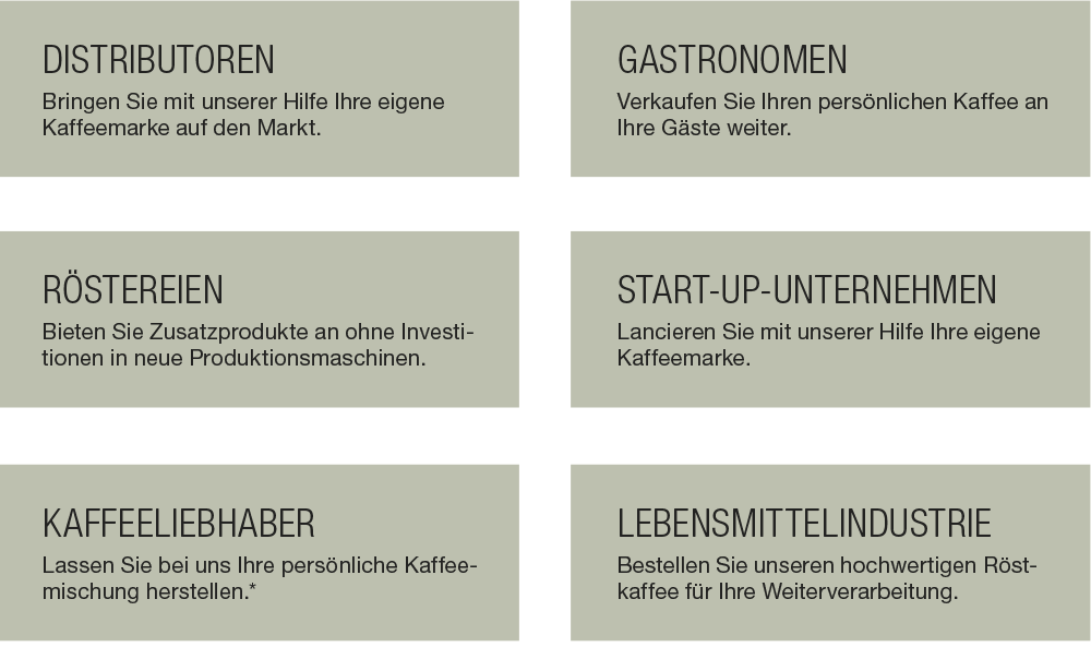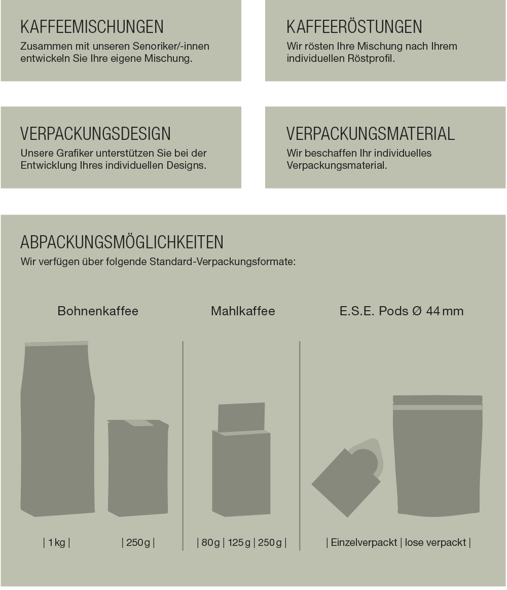 Durch unsere Schwesterfirma Blaser Trading haben wir einen direkten Zugang zum weltweiten Rohkaffeemarkt und können Ihnen jeden Kaffeewunsch erfüllen. Eine grosse Auswahl an Rohkaffees haben wir stets in Bern an Lager. Diese können wir sofort für Ihre individuelle Mischungen verwenden. Unsere Sensoriker/-innen unterstützen Sie beim Erstellen Ihrer eigenen Kaffeekreation. Wir führen verschiedene Verpackungsfolien, die wir betriebsintern mit Ihrer Prägung versehen können. Für komplexere Verpackungsdesigns arbeiten wir mit verschiedenen externen Partnern zusammen. Gerne erfüllen wir Ihren persönlichen Wunsch, melden Sie sich für eine persönliche Beratung.